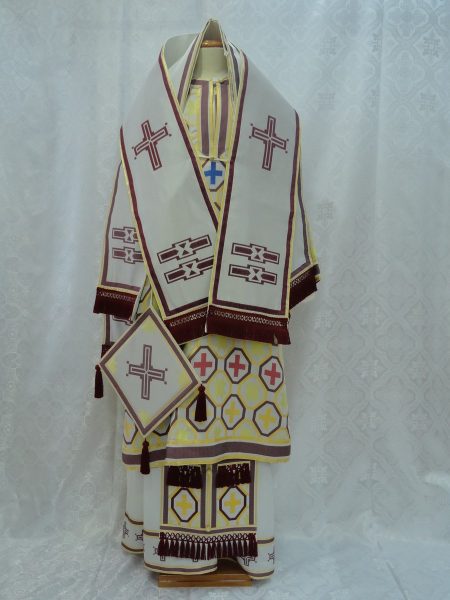 Αρχιερατικά άμφια κατασκευασμένα από υφαντό ύφασμα (αντίγραφο από το σάκκο του Αγίου Νεκταρίου) με ή χωρίς φόδρα. Δεν είναι ετοιμοπαράδοτα καθώς πρέπει να κατασκευαστούν στα μέτρα του αρχιερέα. Δείτε παρακάτω τα μέτρα που χρειαζόμαστε για την κατασκευή των αμφίων.