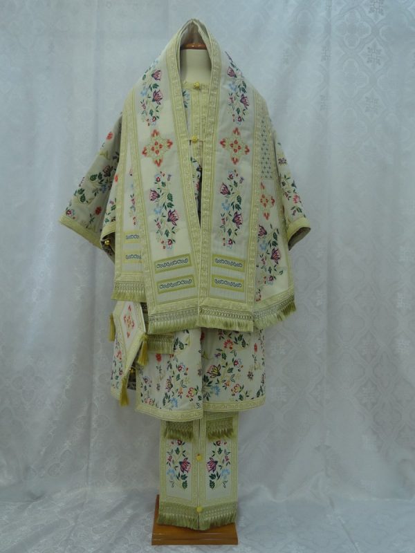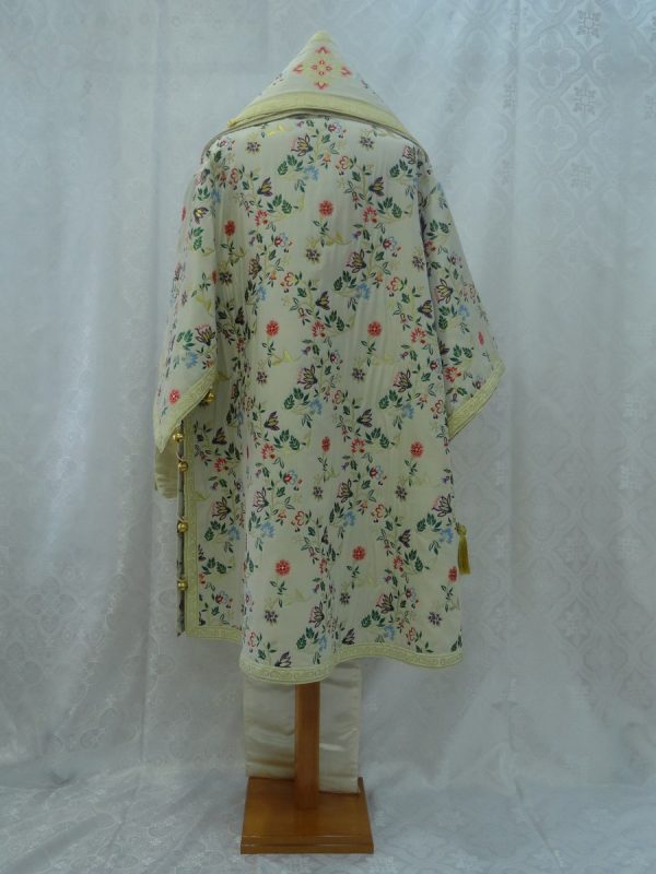 Αρχιερατικά άμφια κατασκευασμένα από μάλλινο αλπακά, μεταλλική κλωστή και φόδρα. Κατάλληλο για χειμώνα. Δεν είναι ετοιμοπαράδοτα καθώς πρέπει να κατασκευαστούν στα μέτρα του αρχιερέα. Δείτε παρακάτω τα μέτρα που χρειαζόμαστε για την κατασκευή των αμφίων.