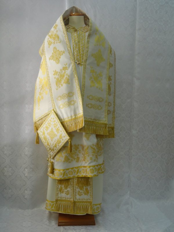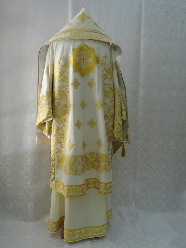 Αρχιερατικά άμφια κατασκευασμένα από ελαφρύ υφαντό/μεταξωτό ύφασμα με ή χωρίς φόδρα σε στιλ αναγέννησης. Δεν είναι ετοιμοπαράδοτα καθώς πρέπει να κατασκευαστούν στα μέτρα του αρχιερέα. Δείτε παρακάτω τα μέτρα που χρειαζόμαστε για την κατασκευή των αμφίων.