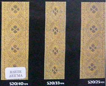 Ιερατικά γαλόνια διαθέσιμα σε τρία μεγέθη: 2.5εκ., 3.3εκ. και 4.0εκ. Παράγονται σε χρυσό χρώμα.