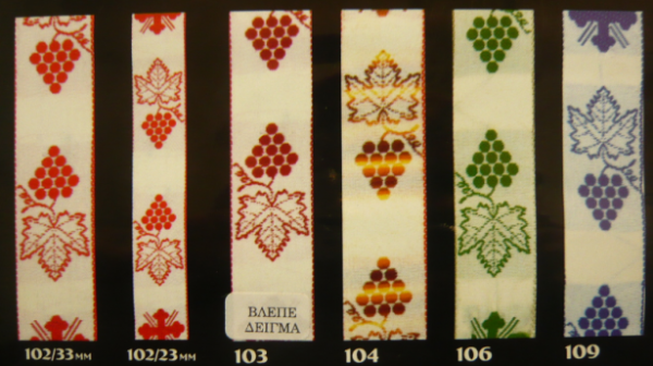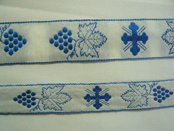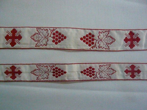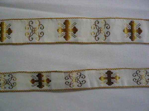 Εκκλησιαστικά γαλόνια υφασμάτινα. Δύο μεγέθη: 2.3εκ. και 3.3εκ. φάρδος. Επιλέξτε χρώμα σύμφωνα με το χρωματολόγιο και τους κωδικούς των χρωμάτων. Οι τιμές είναι το μέτρο.