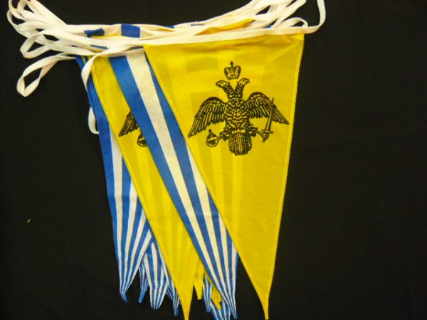 Τριγωνική γιρλάντα Ελλάδας και Βυζαντίου. Περιέχει 16 τρίγωνα σημαιάκια καλύπτοντας μήκος περίπου 11 μέτρα.