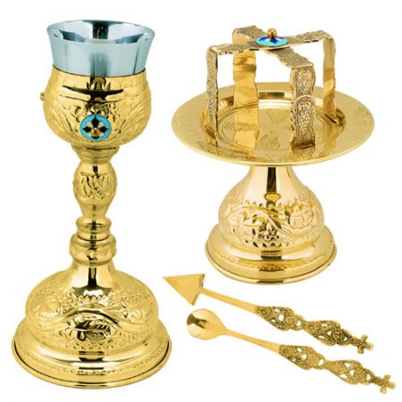 Δισκοπότηρο επίχρυσο (δε μαυρίζει), σετ 5 τεμαχίων. Ύψος 31 εκ.