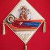 Επιγονάτιο χρυσοκέντητο. Διατίθεται στα χρώματα που βλέπετε όμως μπορούμε κατόπιν παραγγελίας να το κατασκευάσουμε και σε άλλα χρώματα με την ίδια παράσταση.