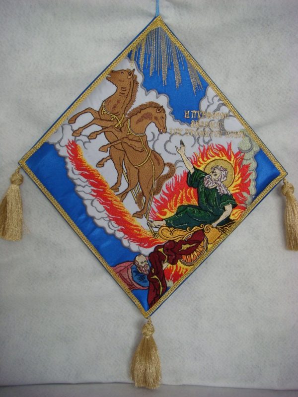 Επιγονάτιο χρυσοκέντητο με τον Προφήτη Ηλία. Υπάρχει δυνατότητα να φτιαχτεί και σε άλλα χρώματα εκτός από αυτό που βλέπετε στη φώτο.