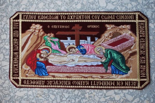 Επιτάφιος χρυσοκέντητος σε βελούδο. Διαστάσεις: 55εκ. Χ 31εκ.
