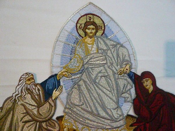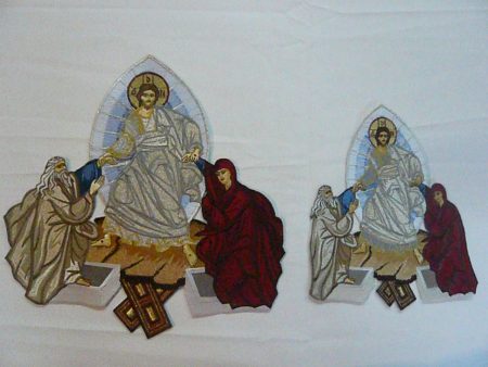 Παράσταση με την Ανάσταση του Κυρίου χρυσοκεντημένη. Υπάρχει σε τρεις βασικές διαστάσεις: 23εκ. Χ 19εκ η μικρή, 26Χ23εκ. η μεσαία και 32Χ30εκ. η μεγάλη. Υπάρχει δυνατότητα και για μεγαλύτερη κατόπιν συνεννόησης.