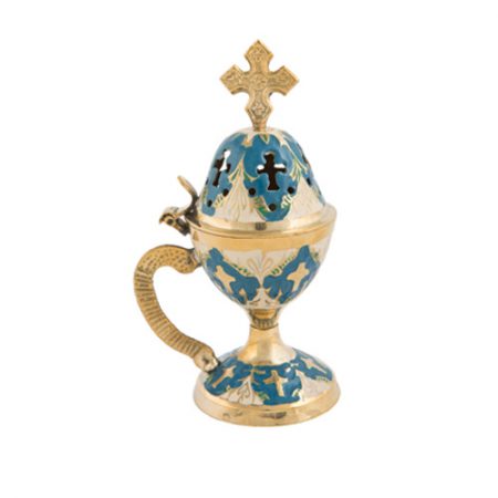 Θυμιατό οικίας μπρούτζινο σε μπλε και άσπρο χρώμα. Ύψος 14 εκ.