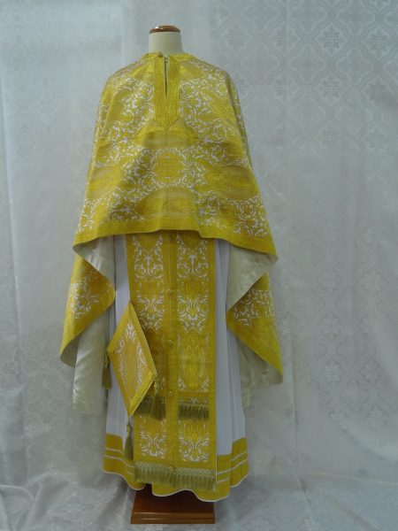 Ιερατικά άμφια κατασκευασμένα από χοντρή στόφα με μεταλλική κλωστή και με φόδρα. Κατάλληλα για χειμώνα. Δεν είναι ετοιμοπαράδοτα καθώς πρέπει να κατασκευαστούν στα μέτρα του ιερέα. Δείτε παρακάτω τα μέτρα που χρειαζόμαστε για την κατασκευή αμφίων.