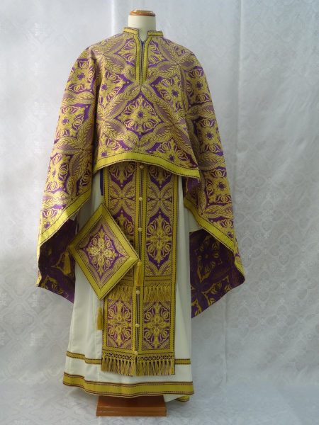 Ιερατικά άμφια κατασκευασμένα από χοντρή στόφα με μεταλλική κλωστή και με φόδρα. Κατάλληλα για χειμώνα. Δεν είναι ετοιμοπαράδοτα καθώς πρέπει να κατασκευαστούν στα μέτρα του ιερέα. Δείτε παρακάτω τα μέτρα που χρειαζόμαστε για την κατασκευή αμφίων.