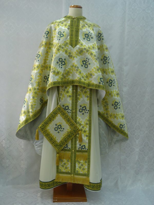 Ιερατικά άμφια κατασκευασμένα από χοντρή στόφα με μεταλλική κλωστή και με φόδρα. Κατάλληλα για χειμώνα. Δεν είναι ετοιμοπαράδοτα καθώς πρέπει να κατασκευαστούν στα μέτρα του ιερέα. Δείτε παρακάτω τα μέτρα που χρειαζόμαστε για την κατασκευή αμφίων.