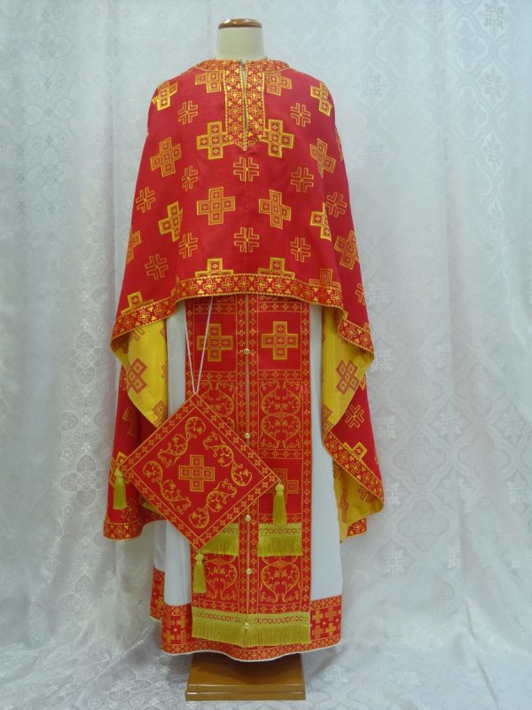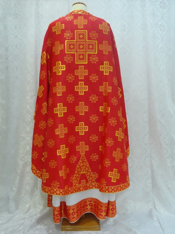 Ιερατικά άμφια σε Αγιορείτικο στιλ. Κατασκευάζεται από ελαφρύ υφαντό-μεταξωτό ύφασμα χωρίς φόδρα. Δεν είναι ετοιμοπαράδοτα καθώς πρέπει να κατασκευαστούν στα μέτρα του ιερέα. Δείτε παρακάτω τα μέτρα που χρειαζόμαστε για την κατασκευή αμφίων.