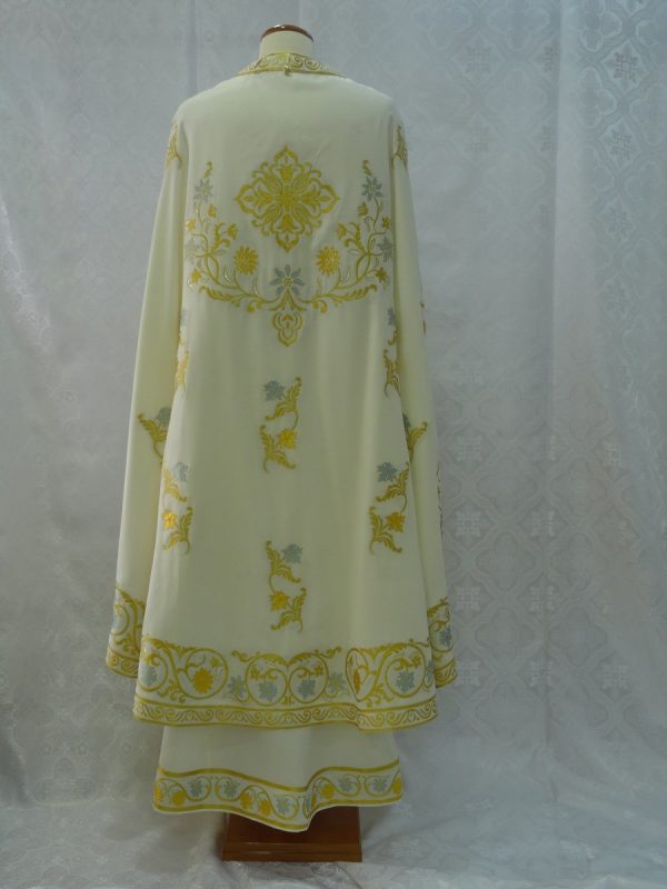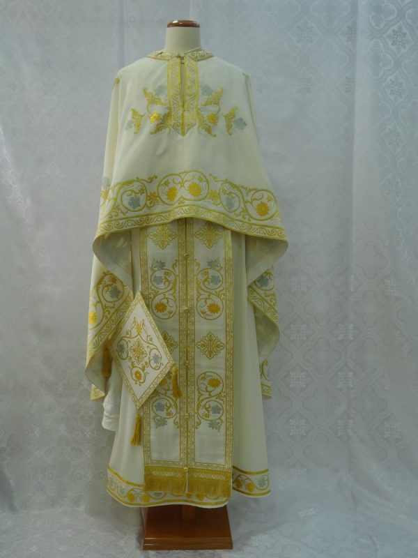 Ιερατικά άμφια σε στιλ bellagio. Κατασκευάζεται από ελαφρύ υφαντό-μεταξωτό ύφασμα με ή χωρίς φόδρα. Εξαιρετική δουλειά στο χρυσοκέντημα Δεν είναι ετοιμοπαράδοτα καθώς πρέπει να κατασκευαστούν στα μέτρα του ιερέα. Δείτε παρακάτω τα μέτρα που χρειαζόμαστε για την κατασκευή αμφίων.