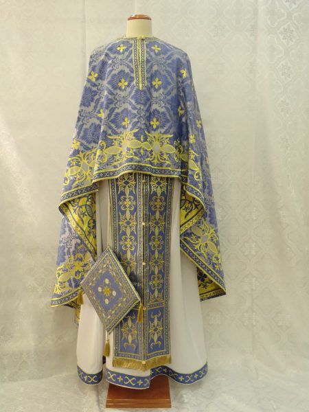 Ιερατικά άμφια σε στιλ caravaggio. Κατασκευάζεται από υφαντό ύφασμα χωρίς φόδρα. Είναι αρκετά χοντρό και μπορεί να φορεθεί χειμώνα πιο καλά. Δεν είναι ετοιμοπαράδοτα καθώς πρέπει να κατασκευαστούν στα μέτρα του ιερέα. Δείτε παρακάτω τα μέτρα που χρειαζόμαστε για την κατασκευή αμφίων.