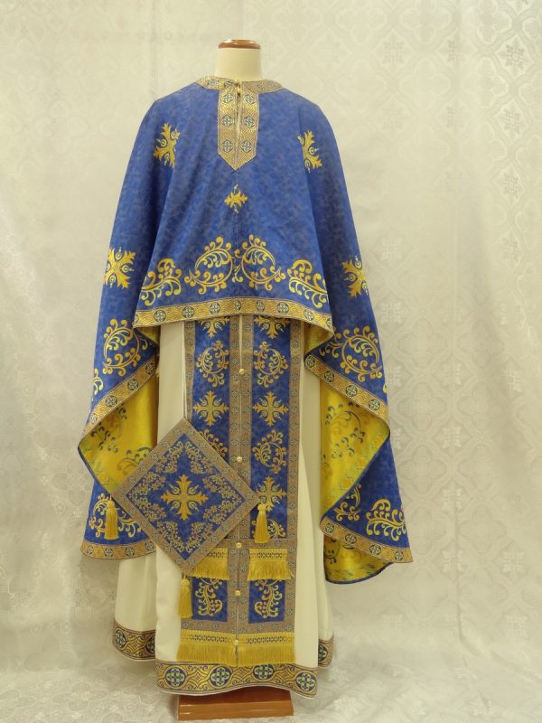 Ιερατικά άμφια σε στιλ Έφεσος. Κατασκευάζεται από υφαντό ύφασμα χωρίς φόδρα. Είναι αρκετά χοντρό και μπορεί να φορεθεί χειμώνα πιο καλά. Δεν είναι ετοιμοπαράδοτα καθώς πρέπει να κατασκευαστούν στα μέτρα του ιερέα. Δείτε παρακάτω τα μέτρα που χρειαζόμαστε για την κατασκευή αμφίων.