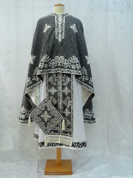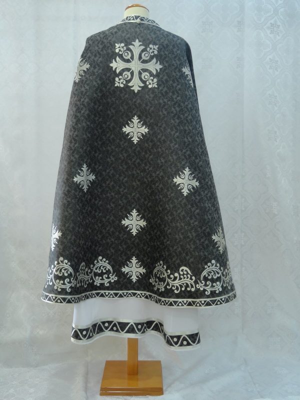 Ιερατικά άμφια σε στιλ Έφεσος. Κατασκευάζεται από υφαντό ύφασμα χωρίς φόδρα. Είναι αρκετά χοντρό και μπορεί να φορεθεί χειμώνα πιο καλά. Δεν είναι ετοιμοπαράδοτα καθώς πρέπει να κατασκευαστούν στα μέτρα του ιερέα. Δείτε παρακάτω τα μέτρα που χρειαζόμαστε για την κατασκευή αμφίων.