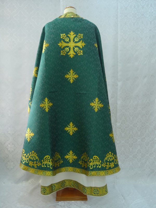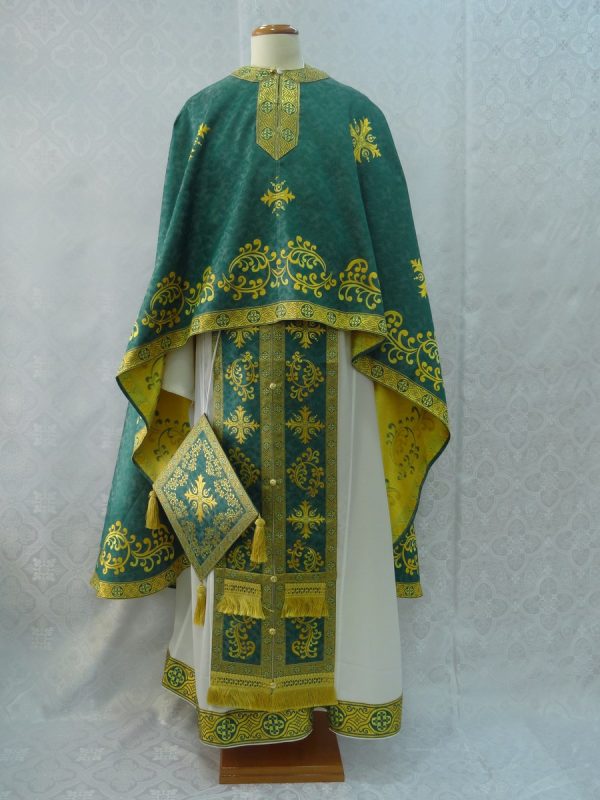 Ιερατικά άμφια σε στιλ Έφεσος. Κατασκευάζεται από υφαντό ύφασμα χωρίς φόδρα. Είναι αρκετά χοντρό και μπορεί να φορεθεί χειμώνα πιο καλά. Δεν είναι ετοιμοπαράδοτα καθώς πρέπει να κατασκευαστούν στα μέτρα του ιερέα. Δείτε παρακάτω τα μέτρα που χρειαζόμαστε για την κατασκευή αμφίων.