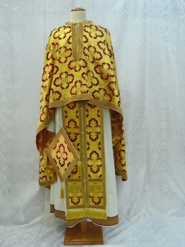 Ιερατικά άμφια κατασκευασμένα από ελαφρύ μεταξωτό/rayon ύφασμα χωρίς φόδρα. Δεν είναι ετοιμοπαράδοτα καθώς πρέπει να κατασκευαστούν στα μέτρα του ιερέα. Δείτε παρακάτω τα μέτρα που χρειαζόμαστε για την κατασκευή αμφίων.
