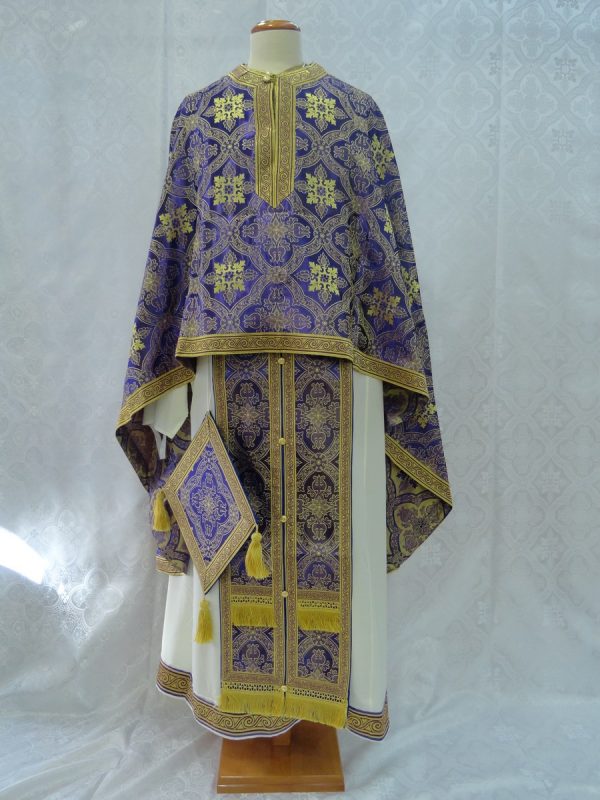 Ιερατικά άμφια κατασκευασμένα από ελαφρύ μεταξωτό/rayon ύφασμα χωρίς φόδρα. Δεν είναι ετοιμοπαράδοτα καθώς πρέπει να κατασκευαστούν στα μέτρα του ιερέα. Δείτε παρακάτω τα μέτρα που χρειαζόμαστε για την κατασκευή αμφίων.