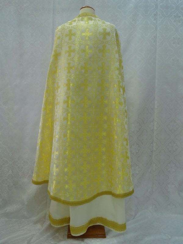 Ιερατικά άμφια κατασκευασμένα από ελαφρύ μεταξωτό/rayon ύφασμα χωρίς φόδρα. Δεν είναι ετοιμοπαράδοτα καθώς πρέπει να κατασκευαστούν στα μέτρα του ιερέα. Δείτε παρακάτω τα μέτρα που χρειαζόμαστε για την κατασκευή αμφίων.