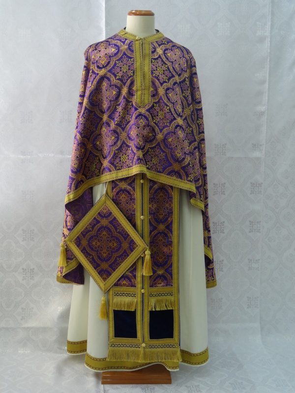 Ιερατικά άμφια κατασκευασμένα από ελαφρύ μεταξωτό/rayon ύφασμα χωρίς φόδρα. Δεν είναι ετοιμοπαράδοτα καθώς πρέπει να κατασκευαστούν στα μέτρα του ιερέα. Δείτε παρακάτω τα μέτρα που χρειαζόμαστε για την κατασκευή αμφίων.