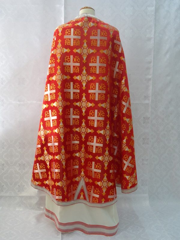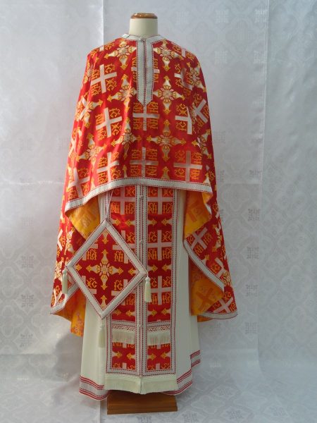 Ιερατικά άμφια κατασκευασμένα από ελαφρύ μεταξωτό/rayon ύφασμα χωρίς φόδρα. Δεν είναι ετοιμοπαράδοτα καθώς πρέπει να κατασκευαστούν στα μέτρα του ιερέα. Δείτε παρακάτω τα μέτρα που χρειαζόμαστε για την κατασκευή αμφίων.