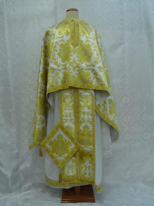 Ιερατικά άμφια κατασκευασμένα από χοντρή στόφα με μεταλλική κλωστή και με φόδρα. Κατάλληλα για χειμώνα. Δεν είναι ετοιμοπαράδοτα καθώς πρέπει να κατασκευαστούν στα μέτρα του ιερέα. Δείτε παρακάτω τα μέτρα που χρειαζόμαστε για την κατασκευή αμφίων.