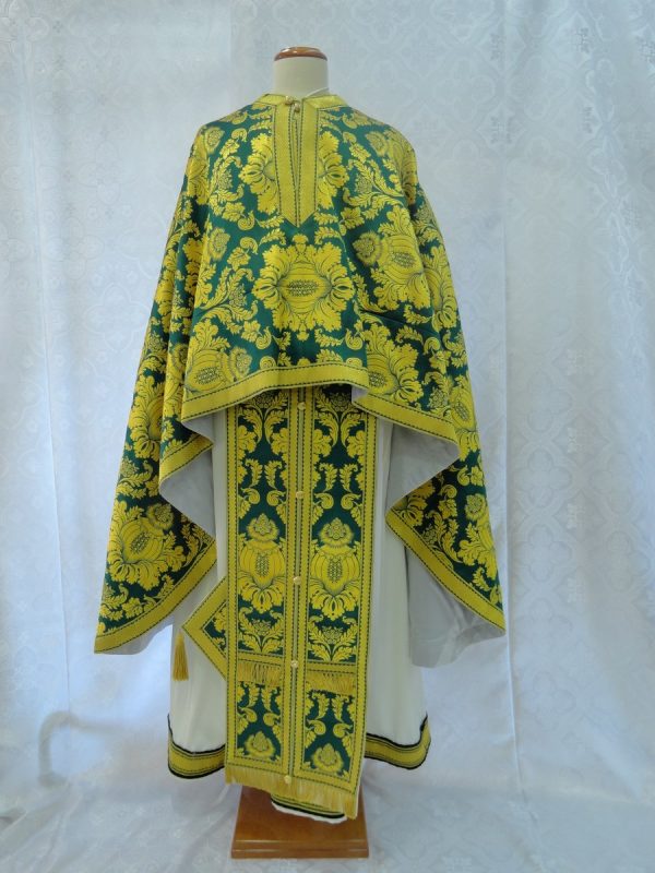 Ιερατικά άμφια κατασκευασμένα από χοντρή στόφα με μεταλλική κλωστή και με φόδρα. Κατάλληλα για χειμώνα. Δεν είναι ετοιμοπαράδοτα καθώς πρέπει να κατασκευαστούν στα μέτρα του ιερέα. Δείτε παρακάτω τα μέτρα που χρειαζόμαστε για την κατασκευή αμφίων.