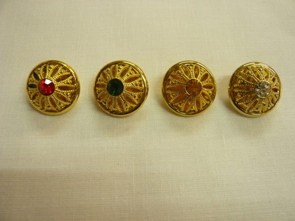 Ιερατικά κουμπιά μεταλλικά με χρωματιστή πετρούλα. Τα κουμπιά είναι χρώματος χρυσό και διαφοροποιούνται με χρωματιστές πετρούλες. Δείτε τις φωτογραφίες για τα χρώματα.
