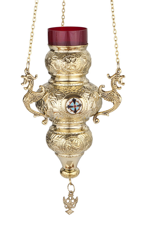 Καντήλι κρεμαστό σε Κερκυραϊκό στιλ μπρούτζινο με σμαλτάκι. Διατίθεται σε τρία μεγέθη: 21 εκ., 24 εκ. και 29 εκ. το μεγάλο.