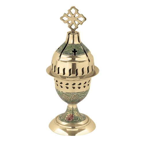 Καντήλι μπρούτζινο με επίστρωση σμάλτου σε πράσινο χρώμα. Ύψος 21 εκ.