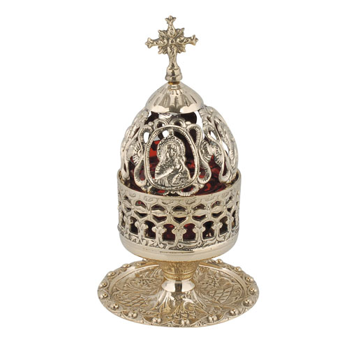 Καντήλι οικίας μπρούτζινο με ανάγλυφη παράσταση. Ύψος 21 εκ.