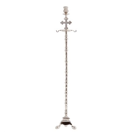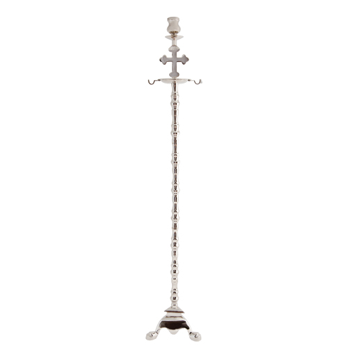 Κηροπήγιο επινικελωμένο με άγκιστρα για θυμιατά. Ύψος 107 εκ.
