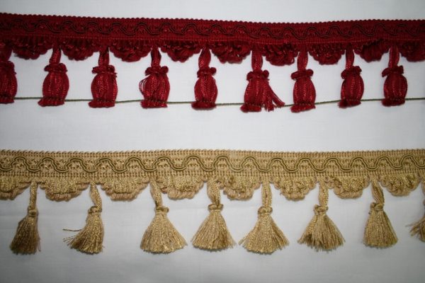 Κρόσσι σε χρώμα γκρενά και χρυσό ρεγιόν, πλούσιο με φουντάκια, κατάλληλο για λάβαρα, σκόλες κτλ.