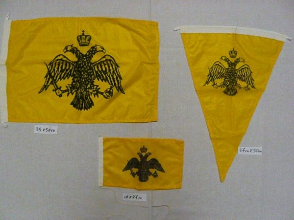 Βυζαντινή σημαία κατασκευασμένη από χοντρό πολυεστερικό σημαιόπανο με διπλόγαζα όπου χρειάζεται για περισσότερη διάρκεια ζωής. Ετοιμοπαράδοτη στις παρακάτω διαστάσεις: