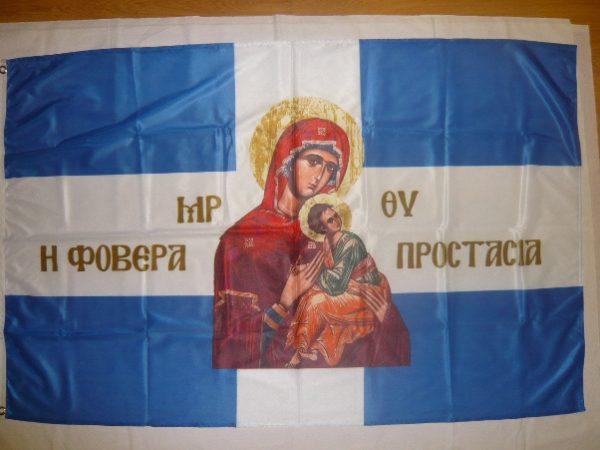 Η σημαία με την Παναγία – Η ΦΟΒΕΡΑ ΠΡΟΣΤΑΣΙΑ – που βλέπετε είναι ετοιμοπαράδοτη στην παρακάτω διάσταση. Κατασκευασμένη από πολυεστερικό σημαιόπανο τριπλής πλέξης εξαιρετικής αντοχής στις καιρικές συνθήκες.