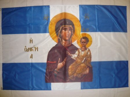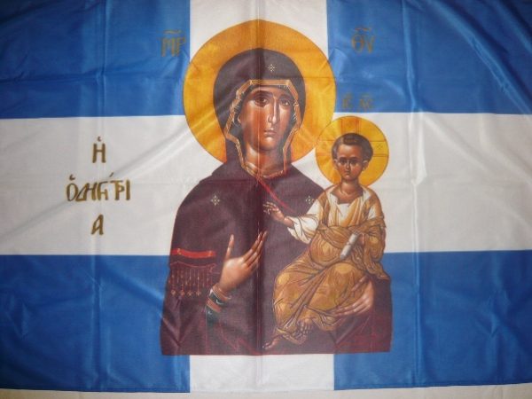 Η σημαία με την Παναγία Οδηγήτρια που βλέπετε είναι ετοιμοπαράδοτη στην παρακάτω διάσταση. Κατασκευασμένη από πολυεστερικό σημαιόπανο τριπλής πλέξης εξαιρετικής αντοχής στις καιρικές συνθήκες.