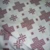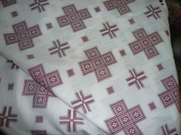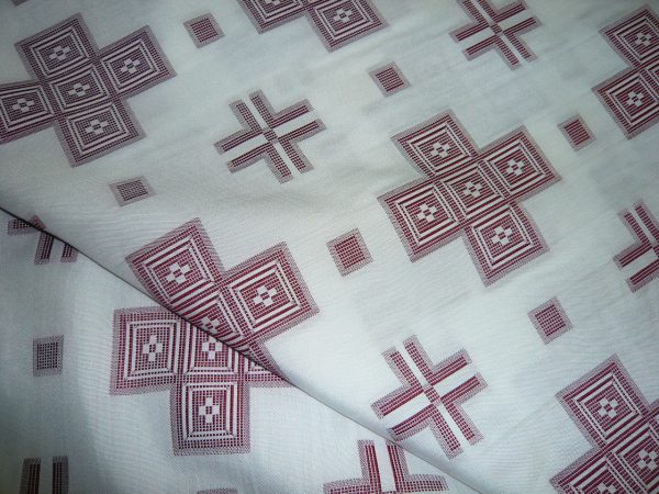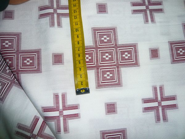 Εκκλησιαστικό υφαντό ύφασμα σε στιλ πολυσταύρι με εκρού/ζαχαρί φόντο και βυσσινί σταυρούς.